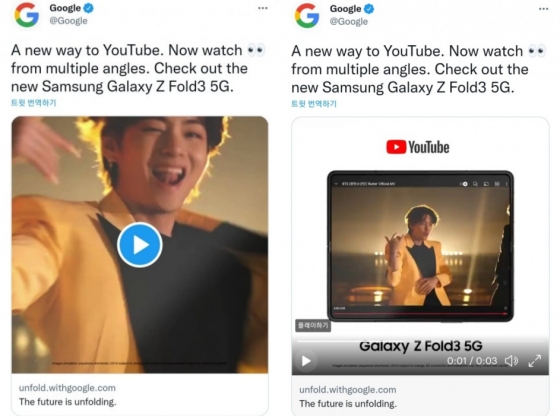이는 'Samsung Galaxy Z Fold3 5G'를 통해 멀티플 앵글로 유튜브를 시청하자는 내용으로, 대중성과 글로벌 인기를 모두 겸비한 뷔를 브랜드의 얼굴로 등장시킨 것이다.
