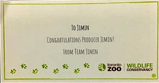 지민의 캐나다 팬베이스 'JIMIN UNITED'는 지민의 첫 프로듀싱 곡인 '친구'가 마블 영화 '이터널스'에 한국어 노래로는 최초 정식 OST로 삽입, 엔딩 크레딧에 지민의 영문 이름 'Jimin Park'이 오른 것을 축하하기 위해 캐나다 토론토에 위치한 '토론토 동물원의 동물 입양 프로그램'을 통해 박지민의 이름으로 북금곰을 입양했다'고 전했다.