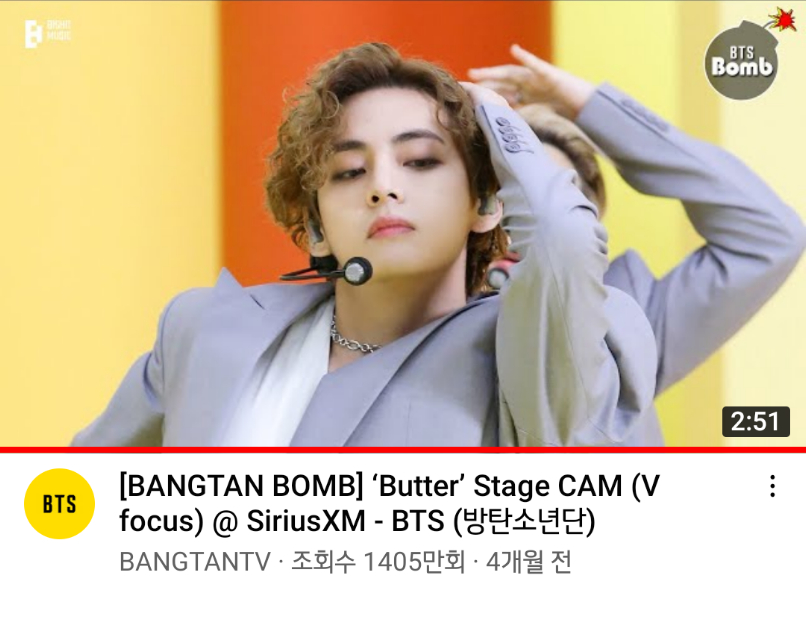 방탄소년단(BTS) 뷔의 '버터(Butter)' 무대 직캠이 1,400만뷰를 돌파하며 올해 공개된 K팝 개인 직캠 최고 조회수를 경신했다.