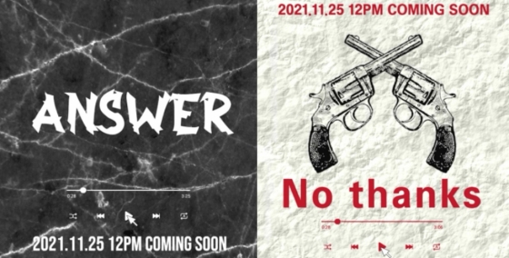 커밍순 영상에는 '앤서'와 '노 땡스'의 하이라이트 멜로디가 담겼다. 약 15초 정도의 짧은 영상임에도 불구하고 곡의 전체적인 분위기를 짐작할 수 있어 이목을 집중시켰다.