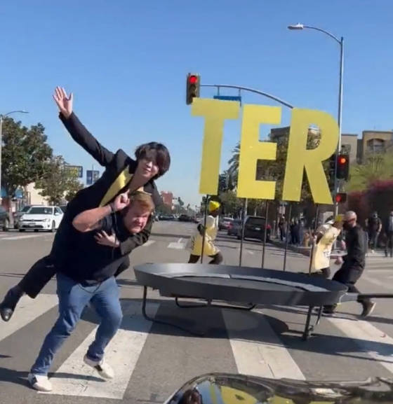 미국 CBS 방송 토크쇼 '더 레이트 레이트 쇼 위드 제임스 코든'의 인기 코너 '횡단보도 콘서트'(Crosswalk Concert)를 위해 LA CBS 방송국 인근 교차로에서 방탄소년단이 깜짝 등장한 것이다.