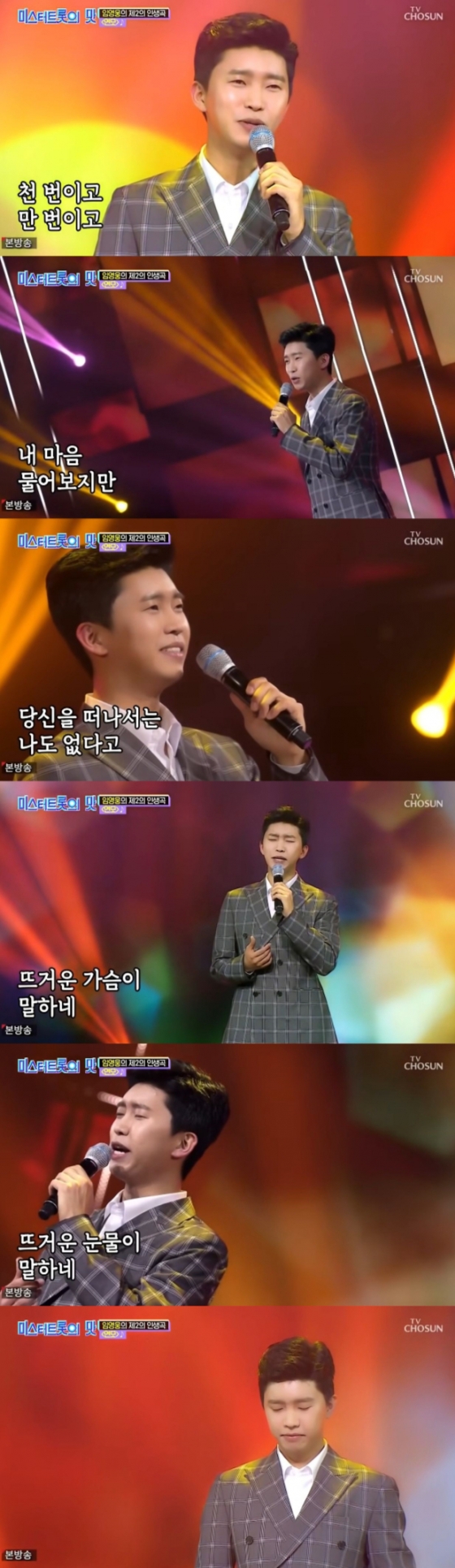 임영웅은 곡 막바지 '천 번이고 만 번이고 내 마음 물어보지만 당신을 떠나서는 나도 없다고 뜨거운 눈물이 말하네 뜨거운 가슴이 말하네' 부분에서는 가슴을 쥐어짜는 듯한 감정 표현으로 '감성 장인' 면모를 빛내며 시청자들에게 큰 감동을 안겼다.