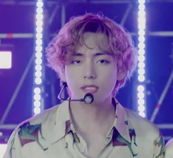 방탄소년단은 'Permission to Dance' 공연을 펼쳤고, 뷔는 곱슬거리는 뷔숑 헤어를 흩날리며 열정적인 무대로 팬들을 사로잡았다.