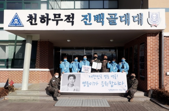 '대한민국 영웅들', '영웅이가 응원합니다'는 주제로 기부에 참여한 40명의 팬들은 체육용품과 함께 크리스마스 트리로 백골부대 장병들에게 따뜻한 마음을 전했다.