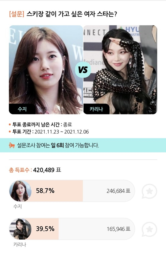 이번 투표에서 2위는 16만5964표(39.5%)를 얻은 에스파 카리나가 차지했다.