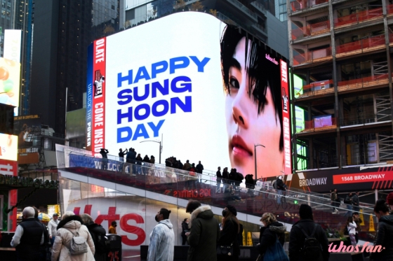 9일 글로벌 케이팝 팬덤 플랫폼 '후즈팬(Whosfan)'에 따르면 엔하이픈의 성훈이 '타임스퀘어에서 생일 축하받을 아이돌은 누구?' 12월 2주 차 투표에서 1위를 차지했다. 이에 후즈팬의 지원을 통해 뉴욕 타임스퀘어 대형 전광판에 생일 축하 광고가 송출됐다.
