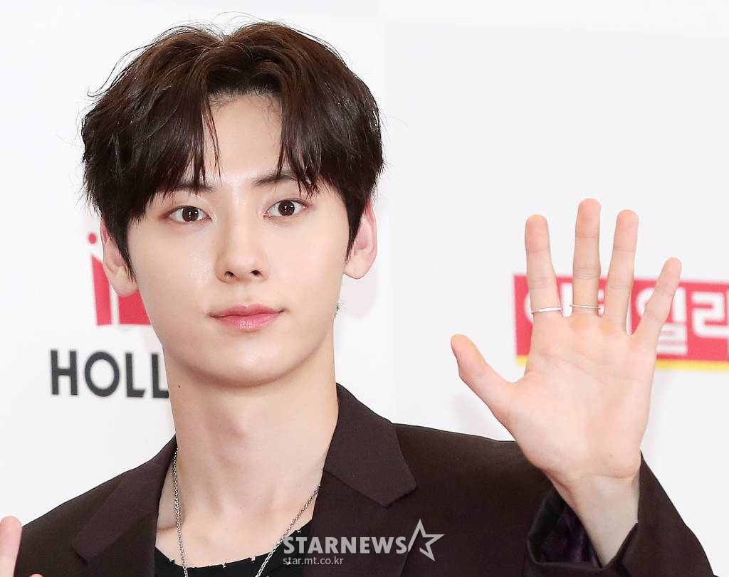 뉴이스트 황민현이 19일 오후 서울 종로구 세종문화회관에서 진행된 '제8회 이데일리 문화대상'에 참석해 포즈를 취하고 있다. 2021.10.19 /사진=김창현 기자 chmt@