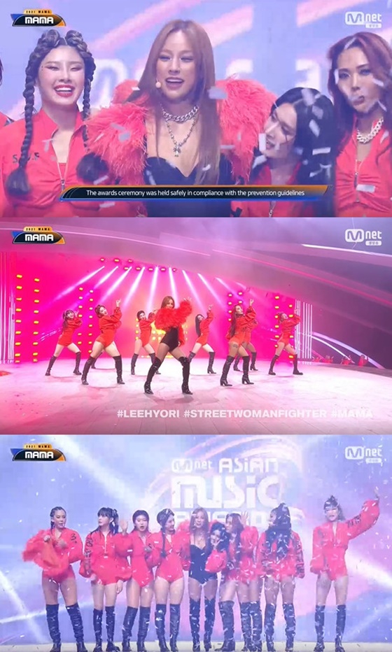 시상식 엔딩은 이효리와 '스트릿 우먼 파이터' 여덟크루가 꾸몄다. 파격적인 바디슈트를 입은 이효리와 댄서들은 강렬한 무대로 대미를 장식했다.