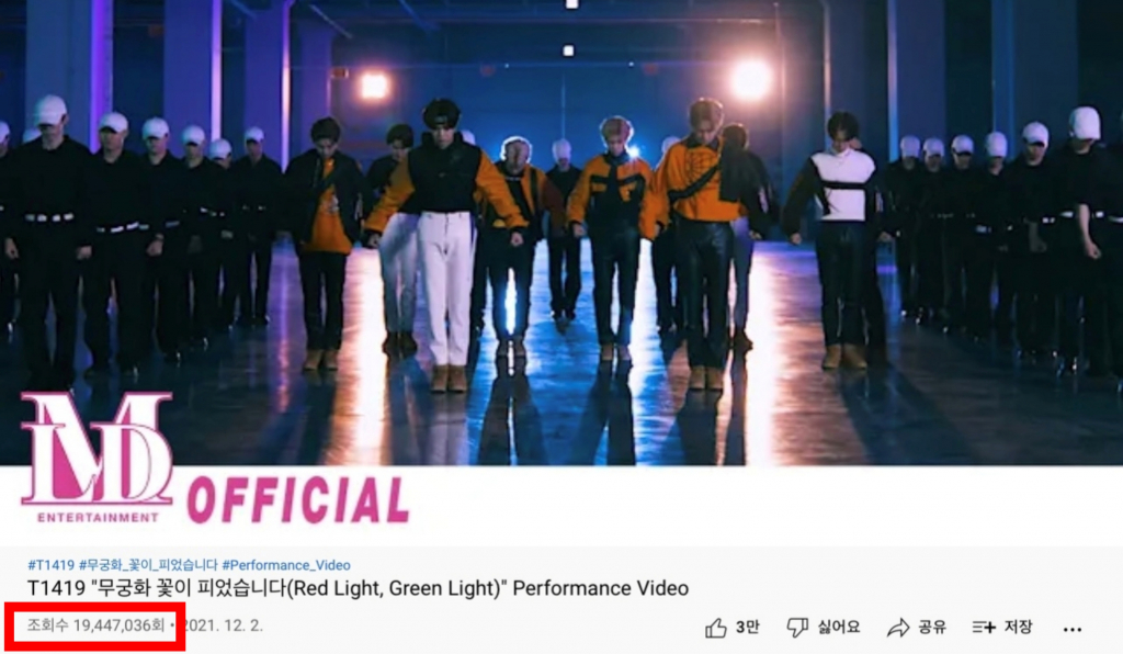보이그룹 T1419(티일사일구)의 신곡 '무궁화 꽃이 피었습니다(Red Light, Green Light)'의 퍼포먼스 비디오가 약 2천만 뷰를 기록하며 뜨거운 글로벌 인기를 입증하고 있다.