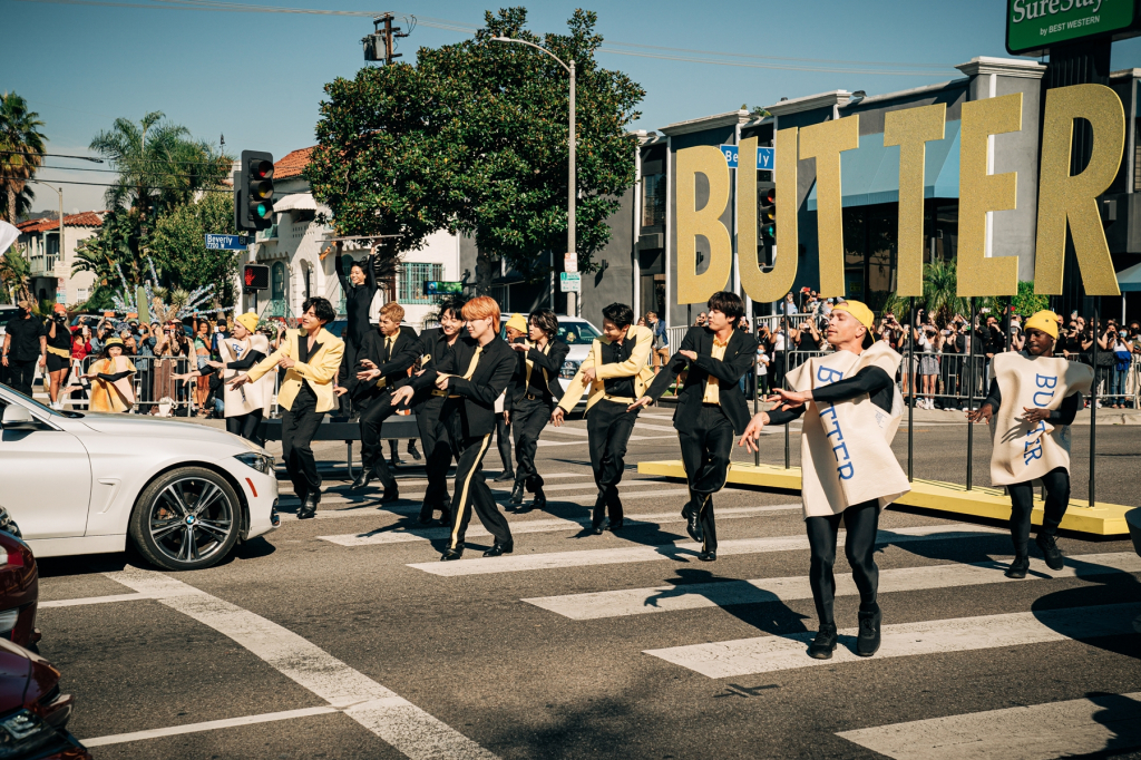 '크로스워크 콘서트'는 신호등 차량 정지신호가 켜진 동안 횡단보도에서 플래시몹 형식으로 공연을 펼치는 '제임스 코든쇼'의 인기 코너이다. 방탄소년단은 이날 글로벌 메가 히트송 'Butter'를 시작으로, 국제수화를 활용한 안무로 전 세계에 울림을 전달한 'Permission to Dance', 처음으로 빌보드 '핫 100' 1위에 오른 'Dynamite'까지 3곡을 연달아 불렀다.