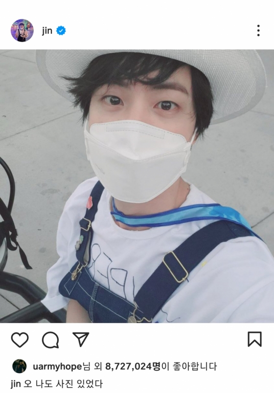 방탄소년단(BTS) 진이 눈부신 셀카로 팬심을 설레게 했다.