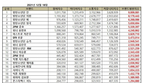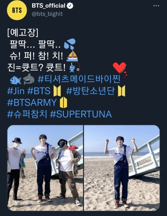 한편 진은 18일 한국기업평판연구소가 발표한 2021년 12월 보이그룹 개인 브랜드평판에서 1위를 차지하며 막강한 인기와 화제성을 입증했다.