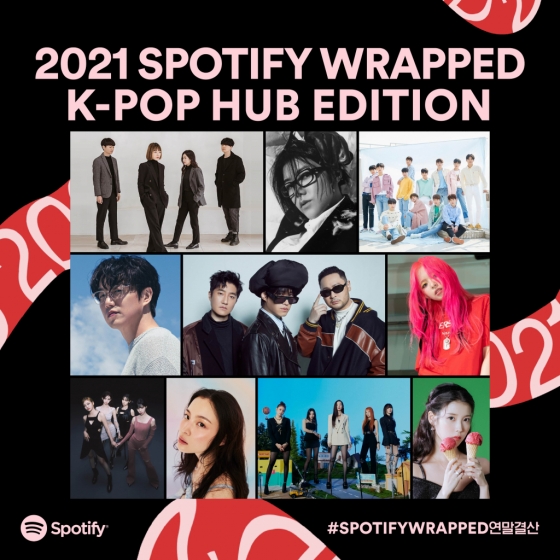 스포티파이는 21일 폭넓은 한국 음악과 아티스트를 전 세계 청취자들에게 소개하는 K팝 허브(K-Pop Hub) 내 주요 플레이리스트별 연말결산을 공개했다. 올해 1월 1일부터 11월 26일까지 각 플레이리스트 상에서 가장 많이 스트리밍된 곡을 집계한 이번 발표는 한 해를 관통하는 세계적 음악 트렌드와 다채로운 스트리밍 기록을 결산하는 플래그십 캠페인 랩드(WRAPPED)의 일환으로 진행됐다.