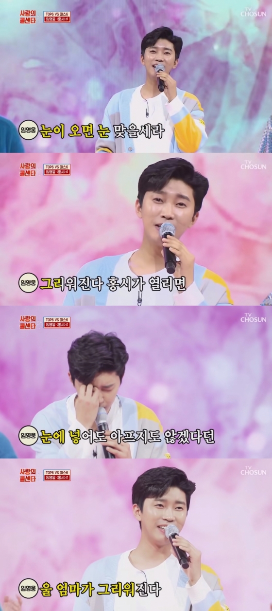 영상에는 TV조선 '사랑의 콜센타'에서 임영웅이 선보인 '홍시' 무대가 담겼다.