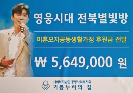 영웅시대 전북별빛방은 "미혼모도 엄마로서 당당하고 굳건하게 가정과 자녀를 지키려 노력하는 이 시대의 '영웅'"이라며 "대한민국 영웅들에게 위로와 희망, 용기가 되고자 하는 KBS 송년특집 임영웅 단독쇼 'We're HERO 임영웅'의 의의를 살린 의미 있는 기부활동이라 생각한다"고 밝혔다.