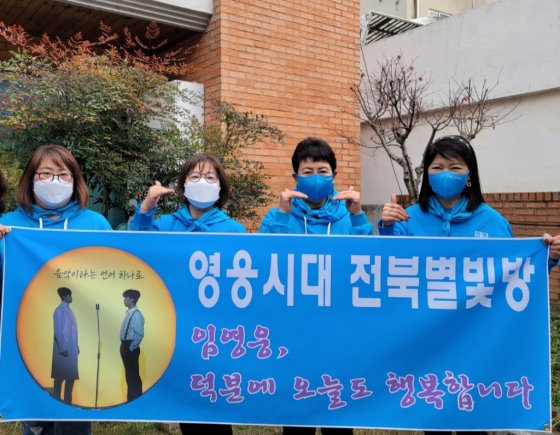 임영웅 팬클럽 영웅시대 전북별빛방 회원들은 12월 21일 전북 전주시 덕진구 미혼모 보호시설 '기쁨누리의집'을 찾아 미혼모 자립기반을 위한 지원금 564만 9000원을 후원했다.