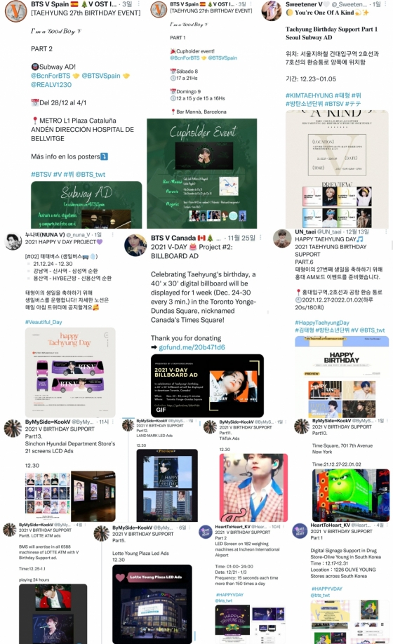 방탄소년단(BTS) 뷔의 생일(12월 30일)을 축하하는 팬들의 정성이 담긴 이벤트가 연일 이어지며 '태천절'을 빛내고 있다.