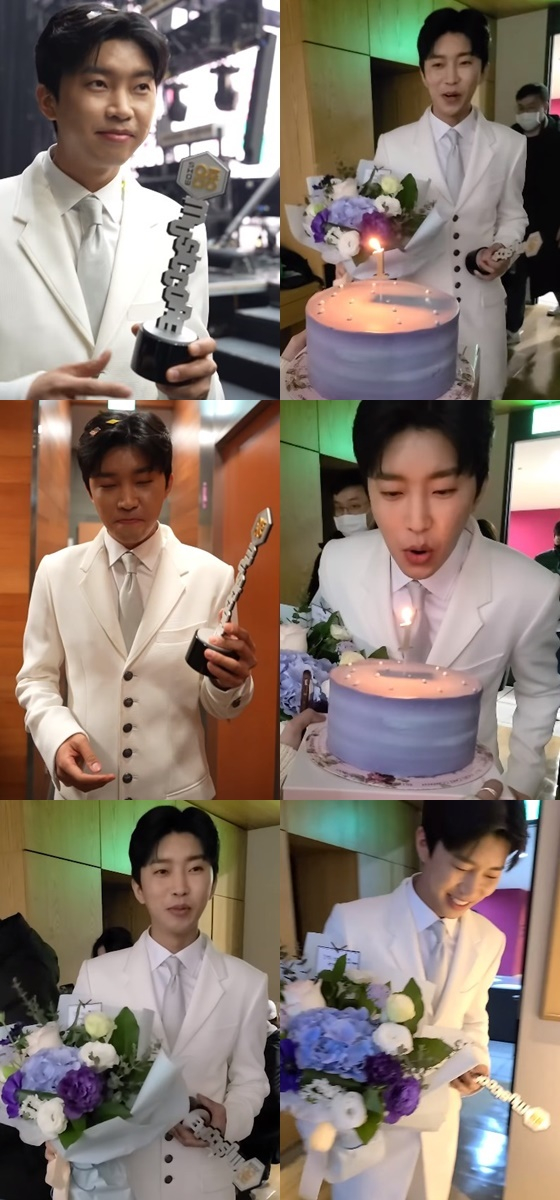 임영웅은 이날 역사적 1위 수상 직후 백스테이지 모습을 공개했다.