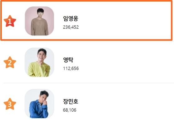 가수 임영웅이 스타랭킹 스타트롯 '랭킹 1위'자리를 지켰다.