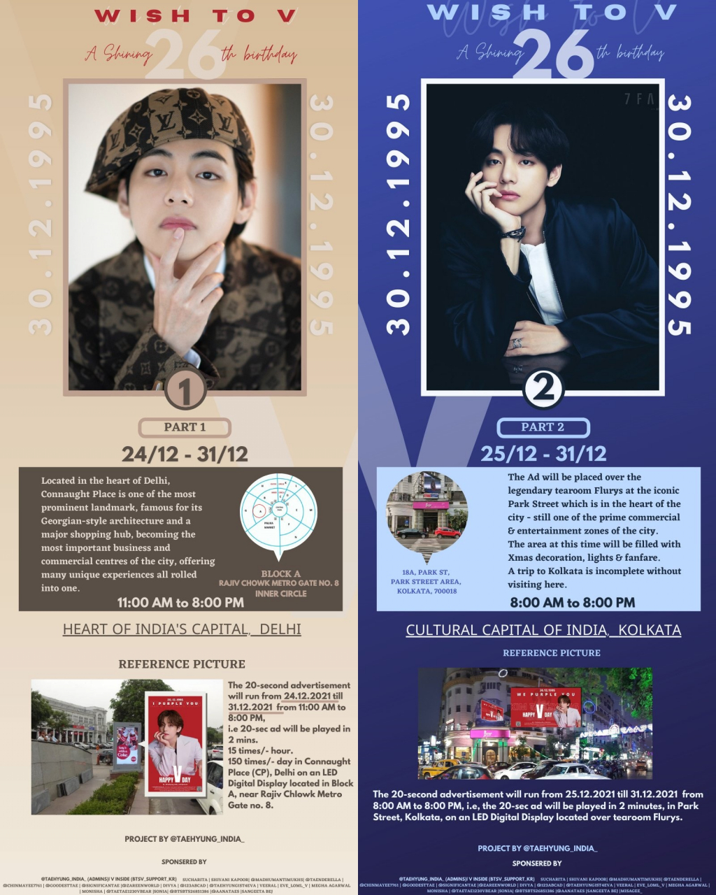 뷔의 인도 팬베이스 'Taehyung India'는 K팝 스타 최초로 옥외 광고를 진행한다.