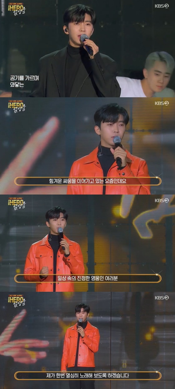 가수 임영웅이 첫 단독쇼를 열며 "힘겨운 싸움을 하고 있는 우리 모두가 영웅"이라는 메시지를 전했다.