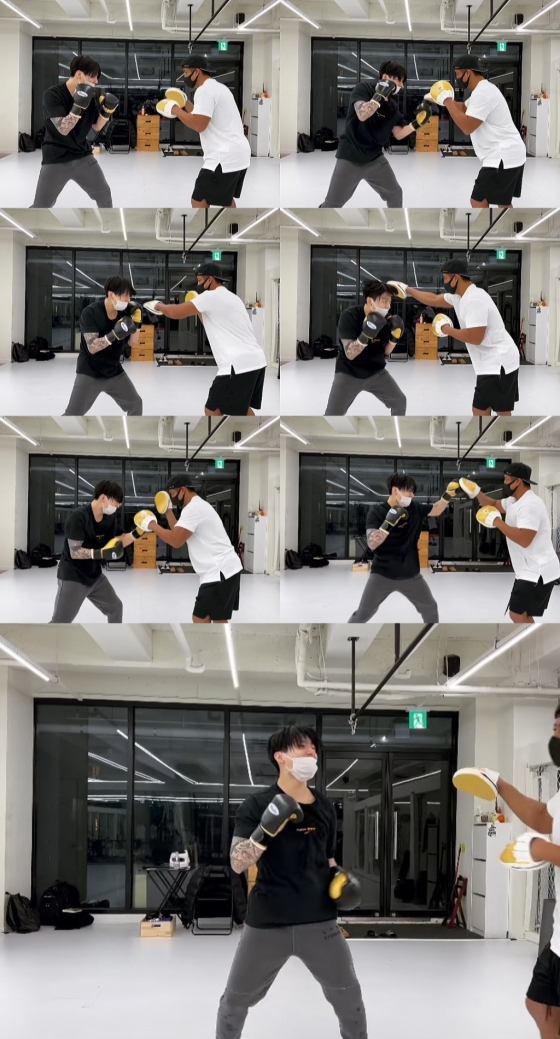 정국의 날쌘 몸놀림과 복싱 미트를 치는 묵직하고 강렬한 소리는 눈과 귀를 사로잡았다.