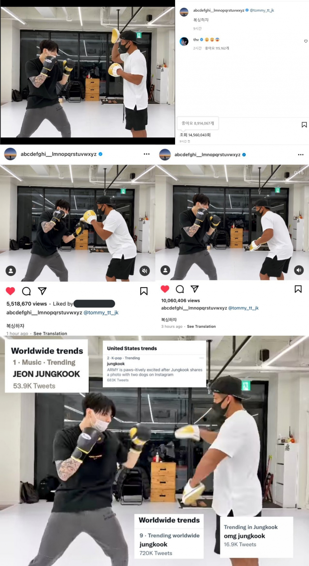 해당 '복싱하쟈' 게시물은 1시간 만에 550만뷰, 3시간 만에 1000만뷰를 돌파했고 3일 오전 6시경 1450만뷰와 891만 '좋아요'를 넘어서는 폭발적 인기를 나타냈다.