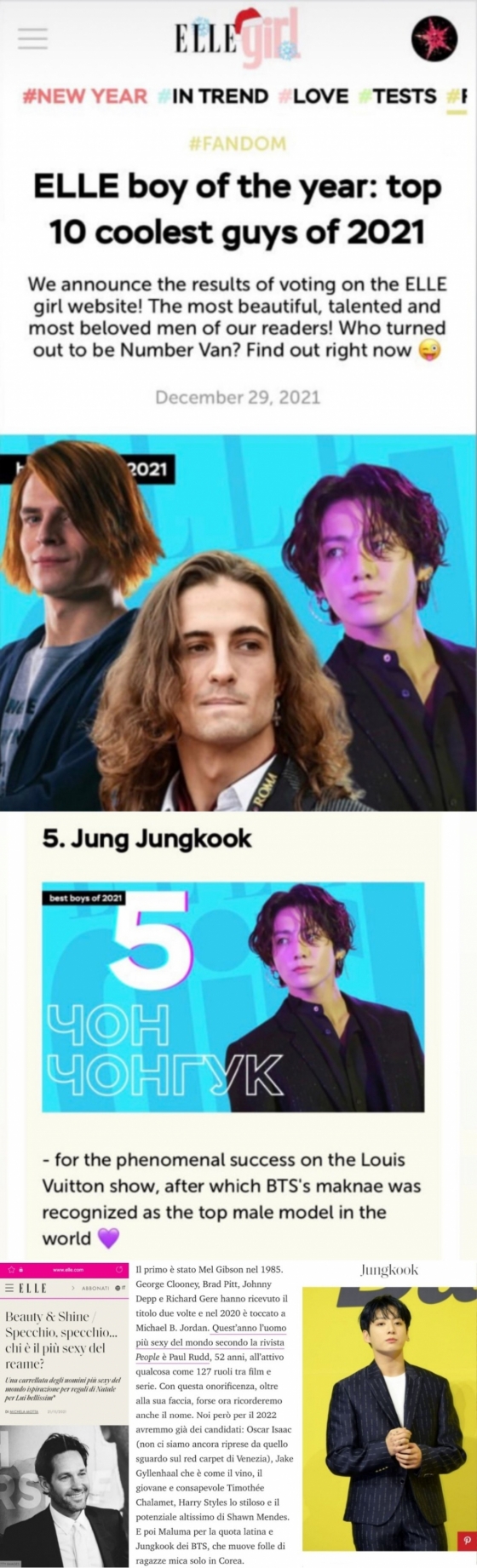 최근 엘르걸(Ellegirl) 러시아는 '올해의 엘르 보이: 2021년 가장 멋진 남자 톱10'을 선정했다.