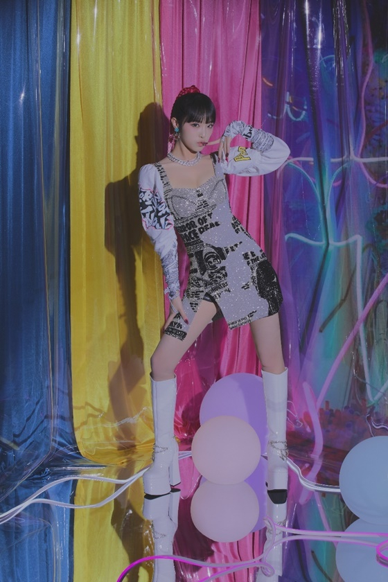 최예나는 5일 0시 공식 SNS를 통해 첫 번째 미니앨범 '??? (SMiLEY)' 히어로 버전의 콘셉트 포토를 게재했다.