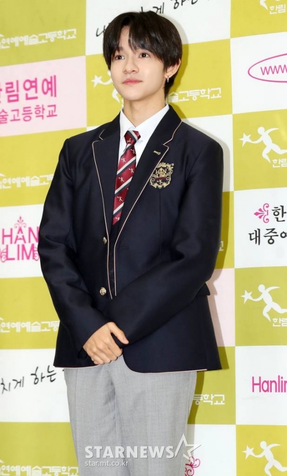 가수 김사무엘이 4일 오전 서울 송파구 장지동 한림연예예술고등학교 제11회 입학식에 앞서 진행된 포토월에서 포즈를 취하고 있다. /사진=김휘선 기자 hwijpg@