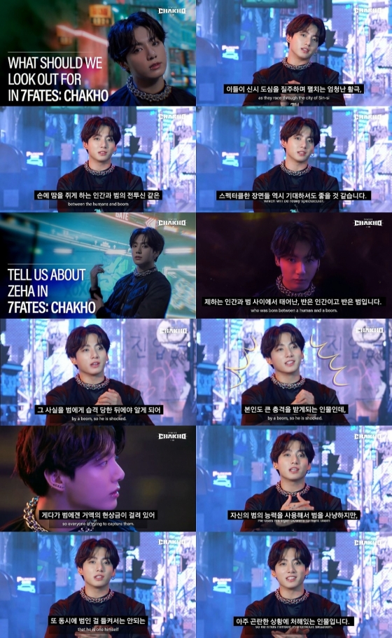 지난 11일 7FATES: CHAKHO by HYBE 공식 SNS, 유튜브 채널에서는 방탄소년단 멤버들을 모티브로 한 웹툰·웹소설 '세븐 페이츠: 착호'에 대해 이야기하는 멤버 정국의 영상을 새롭게 공개했다.