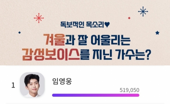 가수 임영웅이 겨울과 잘 어울리는 감성 보이스를 지닌 가수 1위에 올랐다.
