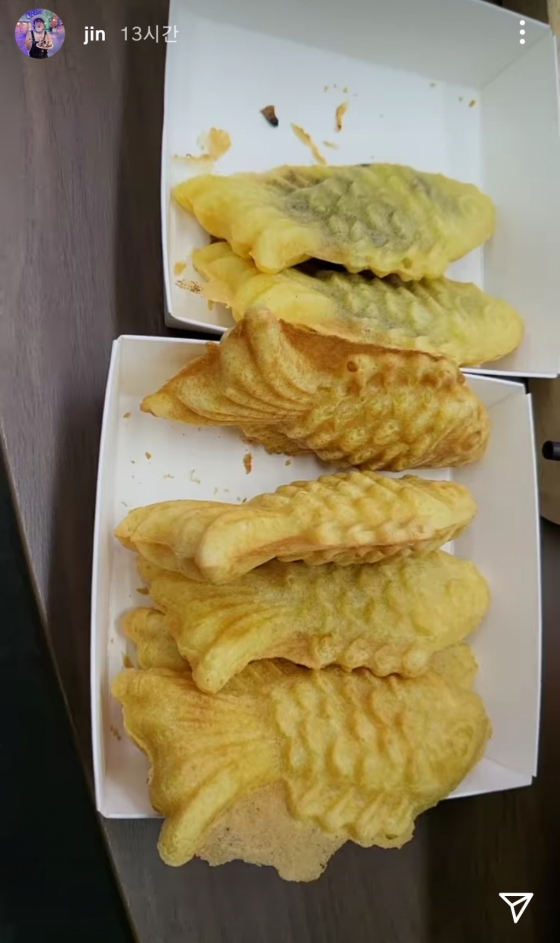 진은 그 바로 전에 자신의 인스타그램에 붕어빵 사진을 게시물로 올린 바 있다.