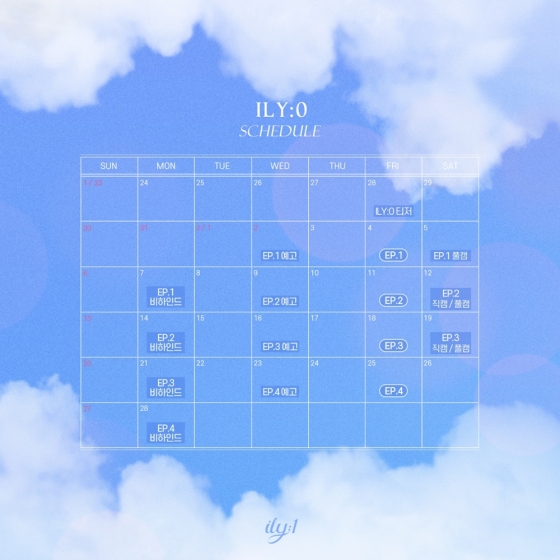 공개된 스케줄러에 따르면, 오는 28일 'ILY:0'(아일리영) 티저를 시작으로 2월 2일엔 1화 예고편이, 2월 4일 리얼리티의 첫 화가 공개될 예정이다.