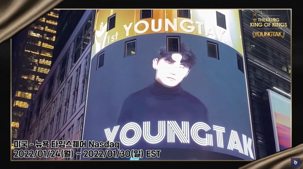 가수 영탁이 뉴욕 타임스퀘어를 장식했다.