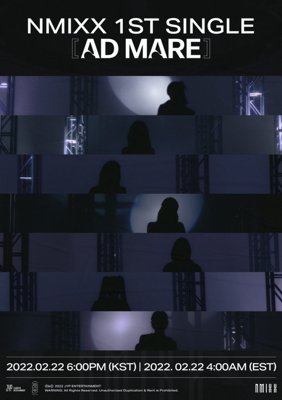 JYP는 3일 0시 공식 SNS 채널에 NMIXX 티저 포스터를 기습 오픈하고 "신인 걸그룹 NMIXX가 2022년 2월 22일 데뷔 싱글 'AD MARE'(애드 마레)를 발매하고 가요계 정식 데뷔한다"고 발표했다.