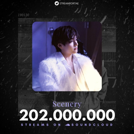 톱 아이돌그룹 방탄소년단(BTS, RM 진 지민 제이홉 슈가 뷔 정국) 멤버 뷔 자작곡 '풍경'이 사운드클라우드 누적 2억 200만 스트리밍을 돌파했다.