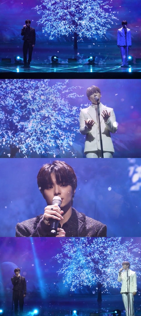 공개된 영상 속 이영빈과 김태우는 각각 블랙, 화이트 슈트를 입고 등장해 눈길을 끌었다. 이어 두 사람은 청량하면서도 아련한 감성을 담은 노래로 듣는 이들의 귓가를 사로잡았다. 꽃잎이 휘날리는 무대 배경 역시 두 사람의 하모니를 더욱 아름답게 만들었다.
