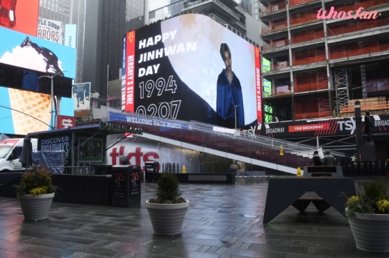 해당 광고는 뉴욕의 타임스퀘어 심장부로 알려진 'tkts' 바로 옆 건물, 가로 47m 길이의 대형 전광판에 현지 시각 기준으로, 김진환의 생일 당일인 7일부터 오는 13일까지 일주일간 송출된다.
