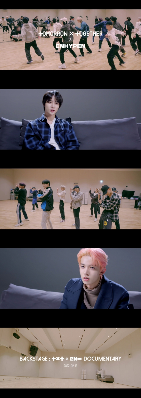 한편, 다채로운 매력이 공존하는 '역대급 컬래버레이션'으로 4세대 아이돌 퍼포먼스의 정점을 찍은 두 팀의 열정과 진심을 담은 다큐멘터리 'BACKSTAGE: TXT x EN- DOCUMENTARY'는 오는 15일 오후 6시 하이브 레이블즈 공식 유튜브 채널을 통해 공개된다.