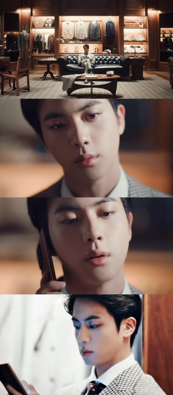 화려하면서도 고급스러운 미모를 가진 진은 지난 20년 삼성 공식 유튜브 채널에 공개된 'GalaxyxBTS: The Strange Tailor Shop' 영상에서 수트를 입고 멤버 정국과 함께 등장, '근본적인 아름다움' 그 자체인 얼굴과 훤칠한 피지컬, 뛰어난 연기력으로 폭발적인 글로벌 반응을 얻기도 했다.