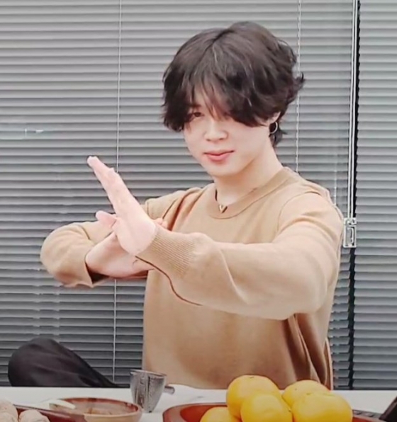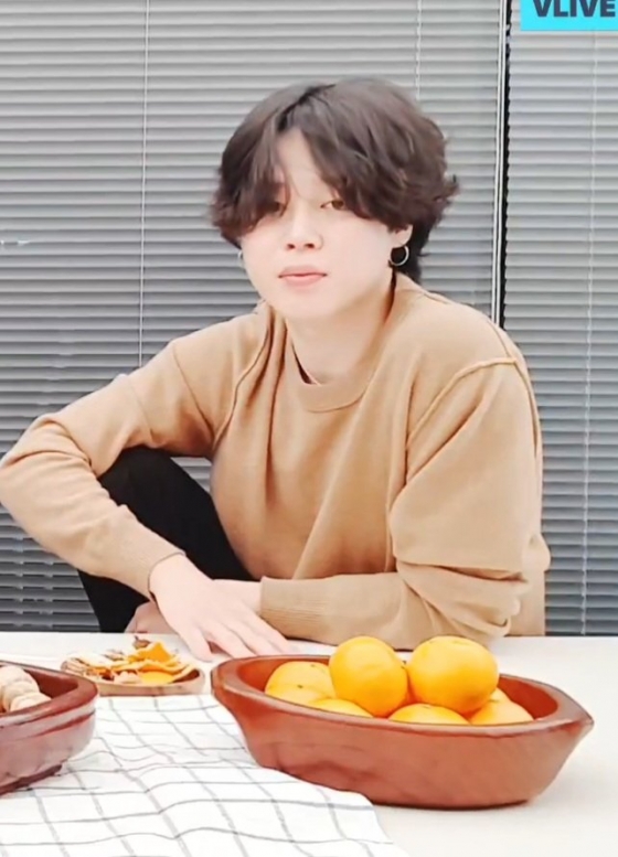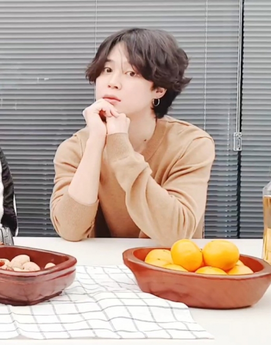 지난 20일 정월대보을 맞이한 '뒷 부럼깨기'라는 제목으로 멤버 RM, 슈가와 함께 브이라이브(VLIVE)를 진행한 지민은 팬들에게 예쁨 받고 싶어 생애 첫 파마를 했다고 밝히며, 귀엽고 맑은 생얼로 등장했다.