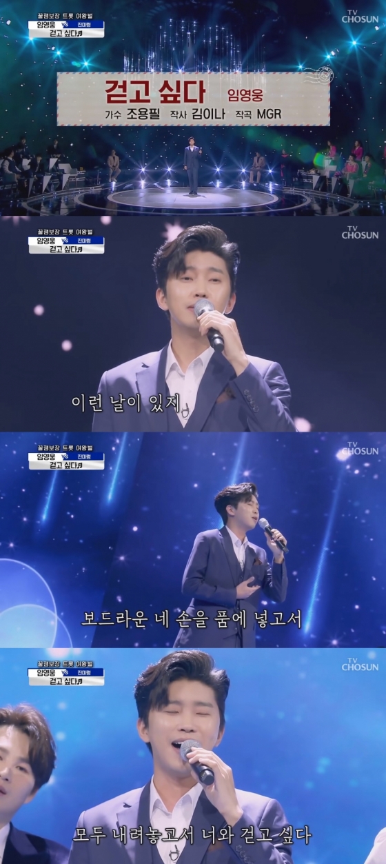 영상에는 TV조선 '사랑의 콜센타'에서 임영웅이 선보인 조용필의 '걷고 싶다' 무대가 담겼다.