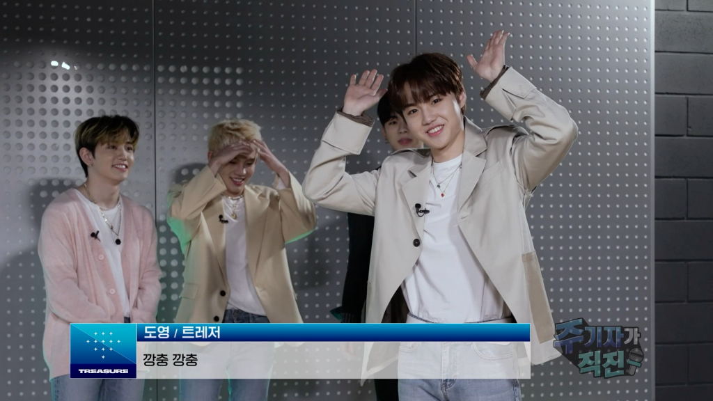 타이틀곡 '직진 (JIKJIN)' 안무 배워보기, MZ세대 신조어 배틀 및 노래 가사를 활용한 밸런스 게임이 큰 웃음을 선사했고, 이 과정에서 트레저는 주기자의 엉뚱한 질문에도 능청스럽게 대처하는 남다른 순발력까지 뽐냈다.