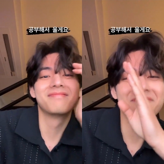 이어 뷔는 겸연쩍은 표정으로 웃음을 참으며 "공부해서 올게요"라며 손으로 얼굴을 가린 영상을 게재했다. 2초간의 짧은 영상이지만 팬들은 뷔의 다소 상기된 귀여운 표정과 잘생김, 팬들과 소통하기 위해 노력하는 예쁜 마음을 보며 천국을 경험했다.