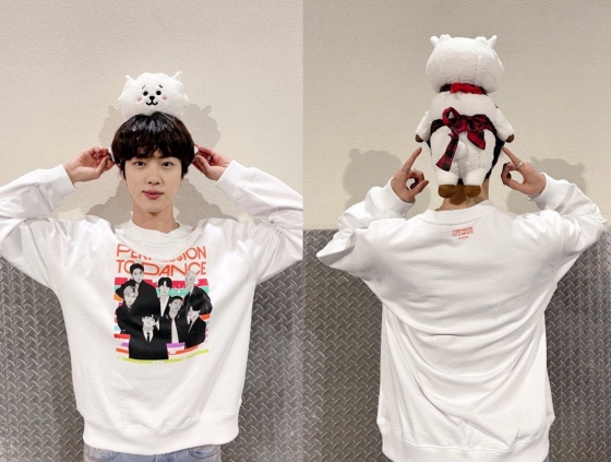 이번에 재판매된 알제이 미디엄 스탠딩 인형은 지난해 12월 3일(한국시간) LA 소파이 스타디움에서 개최된 콘서트 'BTS 퍼미션 투 댄스 온 스테이지(Permission to Dance)' 마지막 공연에서 진이 팬들을 위한 이벤트로 머리에 묶고 나오기도 했다.