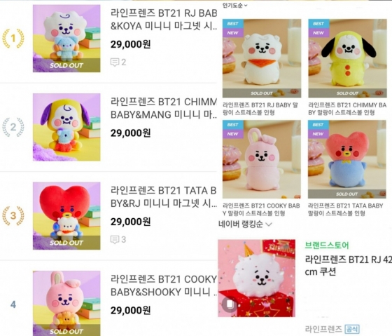 또 다른 'RJ BABY 말랑이 스트레스볼 인형' 제품은 BT21 라인 캐릭터 중에서도 베스트를 차지하며 품절로 이어져 '글로벌 슈스' 인형임을 입증했다.