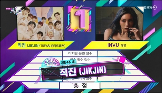'뮤직뱅크'에서 트레저가 태연을 꺾고 2월 마지막 주 1위에 올랐다.