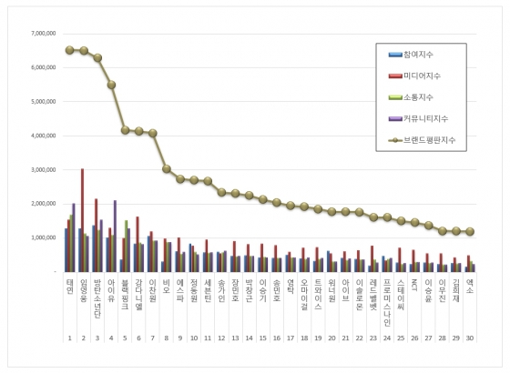 한국기업평판연구소는 2022년 1월 26일부터 2022년 2월 26일까지의 가수 브랜드 빅데이터 119,387,722개를 분석하여 소비자들의 브랜드 참여, 미디어, 소통, 커뮤니티 분석을 했다.