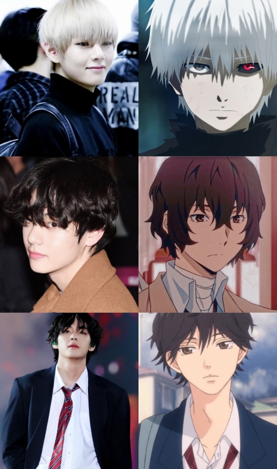 이 밖에도 '데몬 슬레이어'의 '무잔 키부츠지'는 팬들이 실사 캐스팅 1순위로 뷔를 지목하며 '2D'의 완벽 실사판이라는 반응을 불러왔다. 스포츠애니메이션 '하이큐'의 '카게야마 토비오'와 '달려라 방탄' 속 뷔의 콘셉포토도 감탄을 자아낼 만큼 닮아있다.
